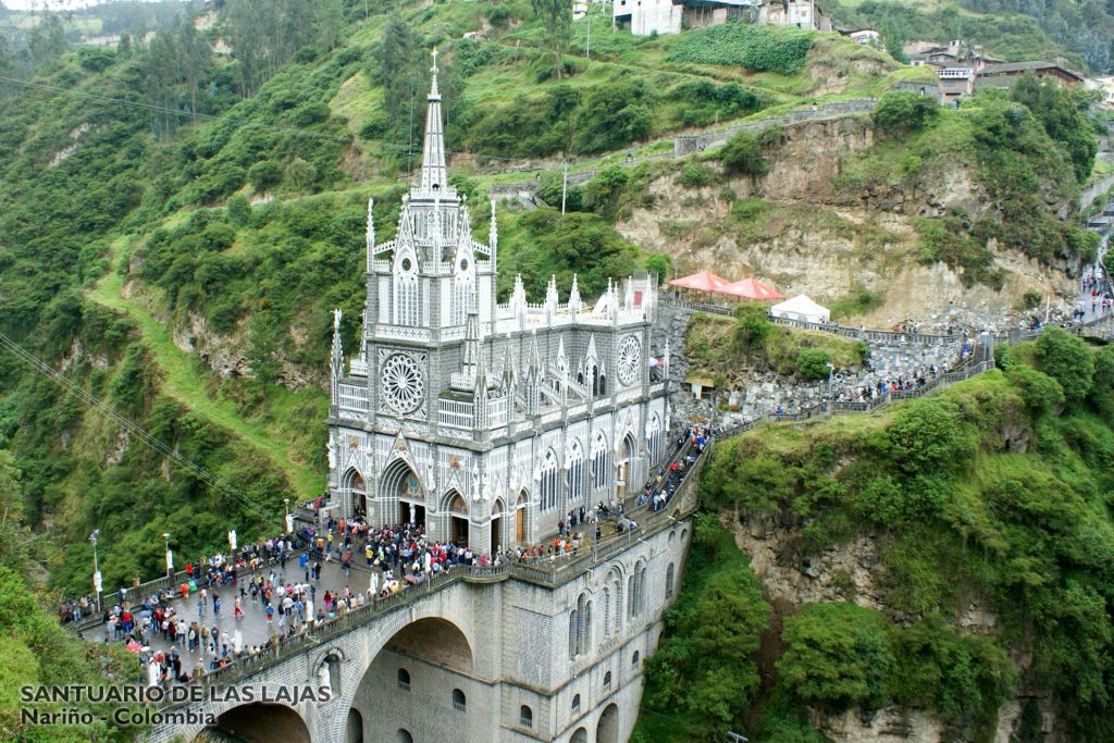 Más adelante descenderemos al Santuario de Nuestra Señora del Rosario de Las Lajas, donde encontramos también el museo del Santuario. Accedemos a la iglesia y esperamos hasta el anochecer cuando se encienden las luces del Santuario y nos deslumbra con su colorido.