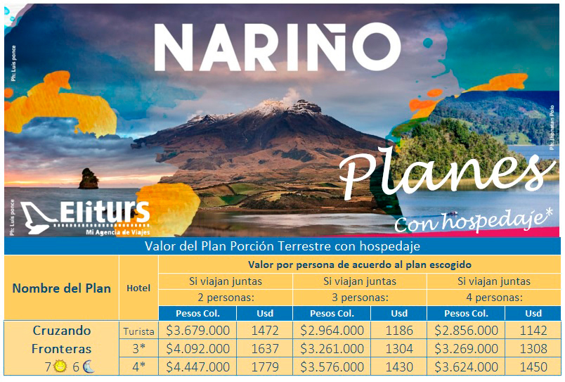 Degustar del dulce de ChilacuanIncluir en el recorrido visita a las Torres de Santa Lucía. Es un hito del territorio que dejó la presencia de grupos insurgentes, fueron construidas por los pobladores locales cumpliendo orden de estos. Su objetivo era militar, y cuando iban a ser destruidas, la comunidad pidió que se mantuvieran y se realizó una jornada de embellecimiento de las estructuras. Estas torres tienen una altura de 15 metros aproximadamente y 3,50 mt de ancho cada una, que constan de cuatro pisos construidos en madera y cubiertas con teja metálica, además las une un puente colgante; lo que llama la atención de los visitantes. Además cuentan con un muelle para el arribo de las lanchas que llegan a la vereda. (Desde la vereda el Puerto a la vereda Santa Lucía hay un recorrido en lancha de aproximadamente 1 hora – los invitamos a cotizar este destino) Visita a la vereda de El Motilón: cuenta con el templo de la Virgen de las Lajas, con un grupo de huertas locales, entre las cuales se resalta la Chagra Quillasinga, que muestra desde la tradición ancestral, la importancia de la tierra y las relaciones del hombre y la naturaleza. También sobresalen los talleres artesanales, de canoas y lanchas; complementados por la venta de vino artesanal de Motilón y Manzana. También en cercanías a la vereda se realiza el alquiler de Kayaks y Canotaje.Día 3. “Ipiales” Resplandor de Nubes Verdes y al otro lado de la Frontera: Viaje desde la Frontera a Quito